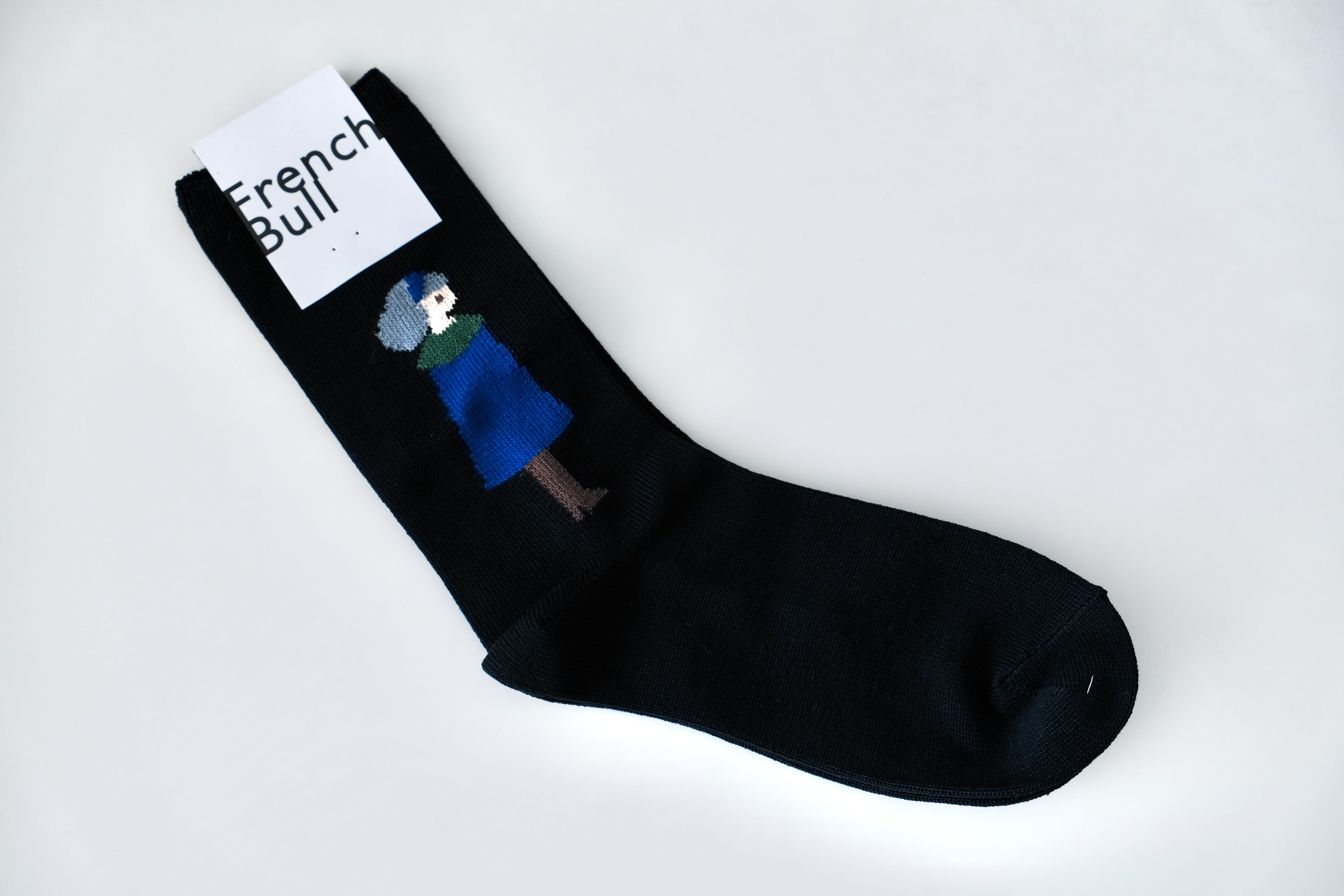 男の子と女の子がモチーフで、左右で柄が変わる履いていて楽しくなるソックスです。