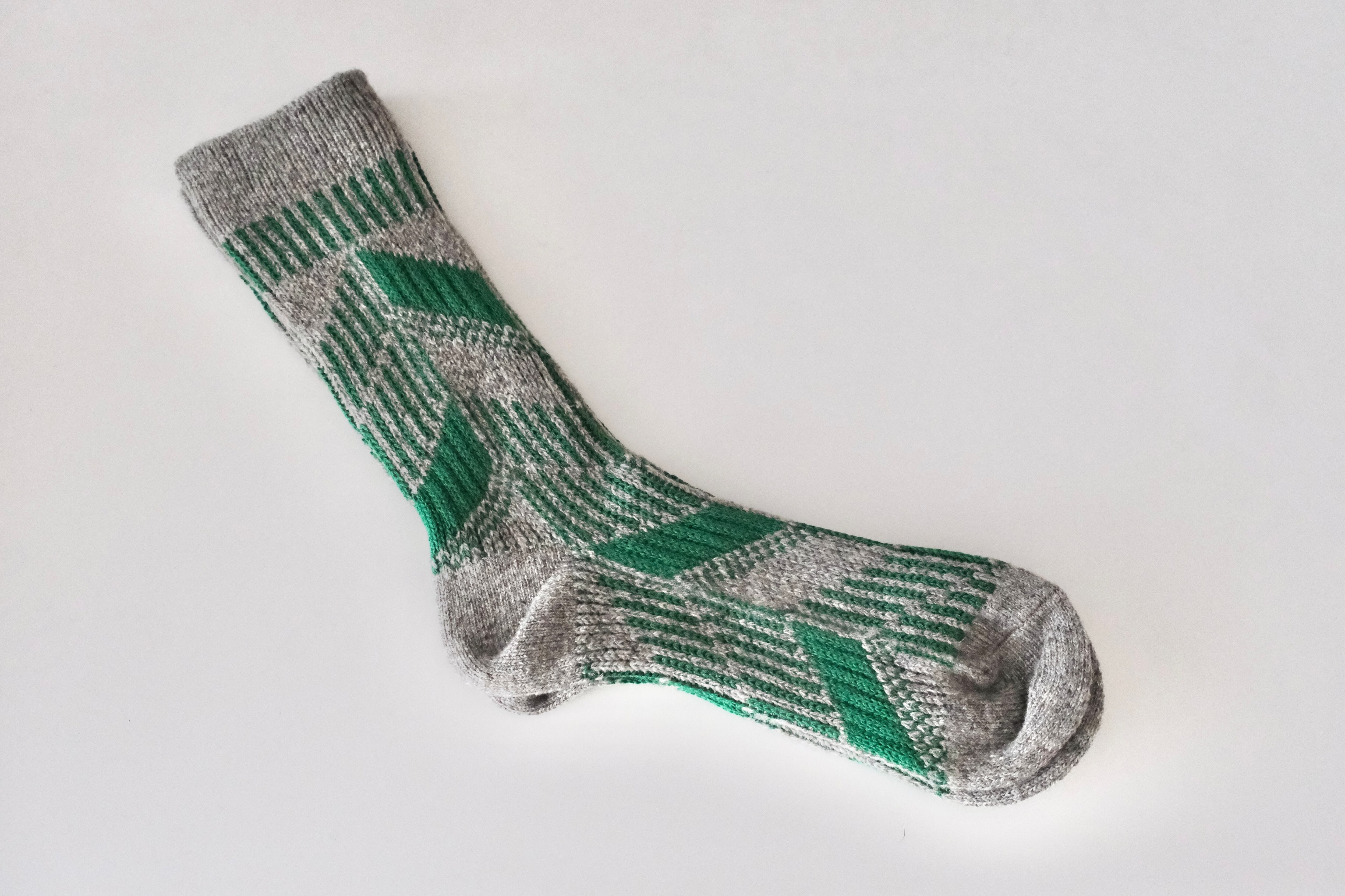 屋根をモチーフにした幾何学柄のソックス。