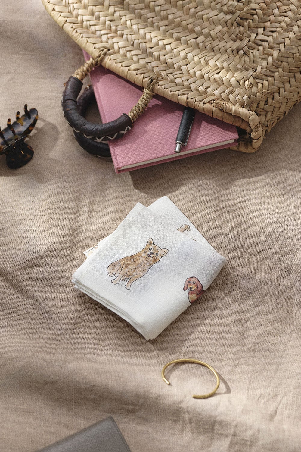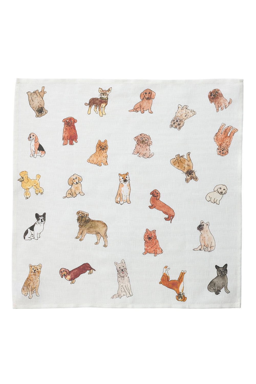 イザベル ボワノさんの描く犬のイラストをリネン生地にプリントしたハンカチ。