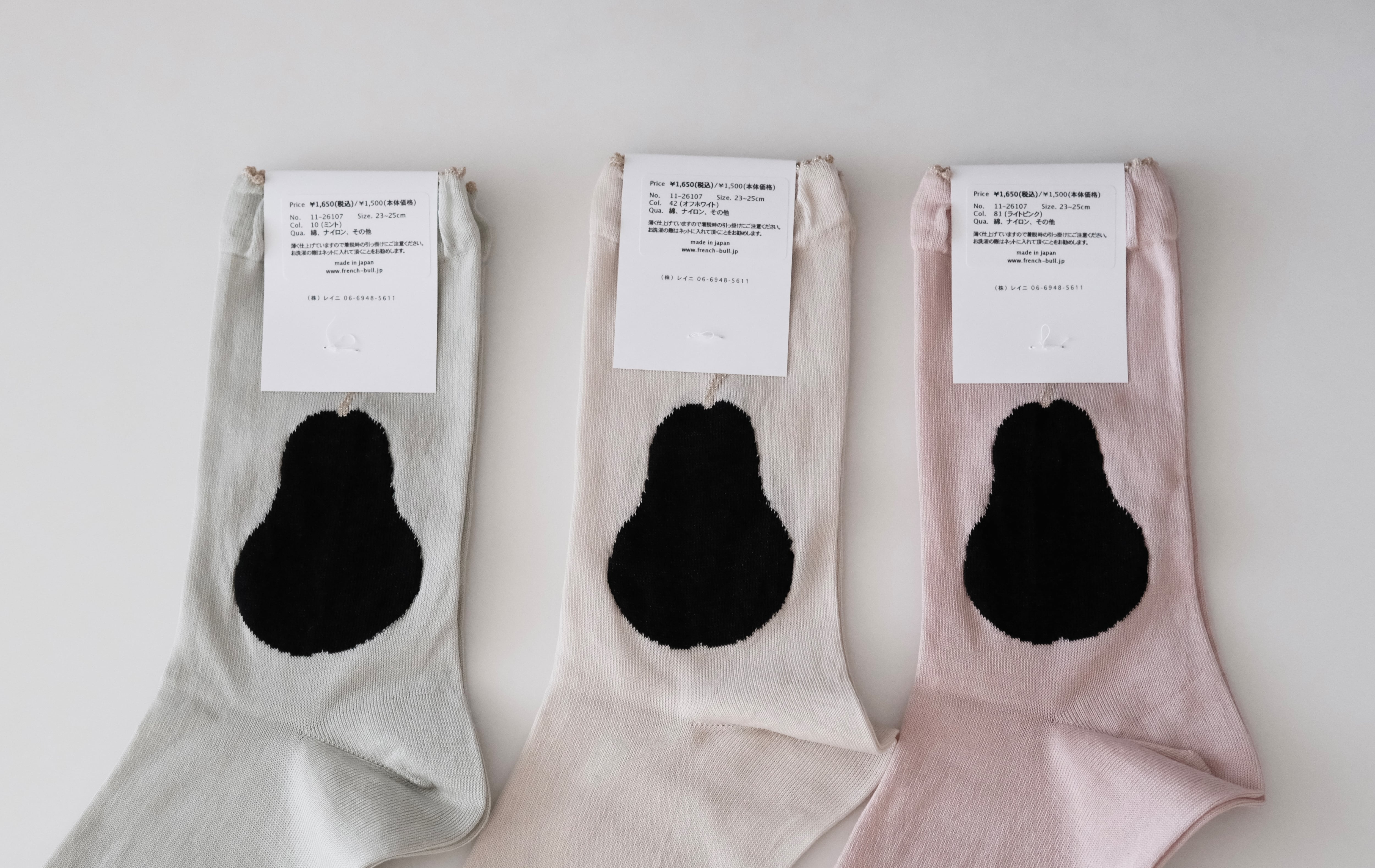 洋梨のモチーフがかわいいソックスです。