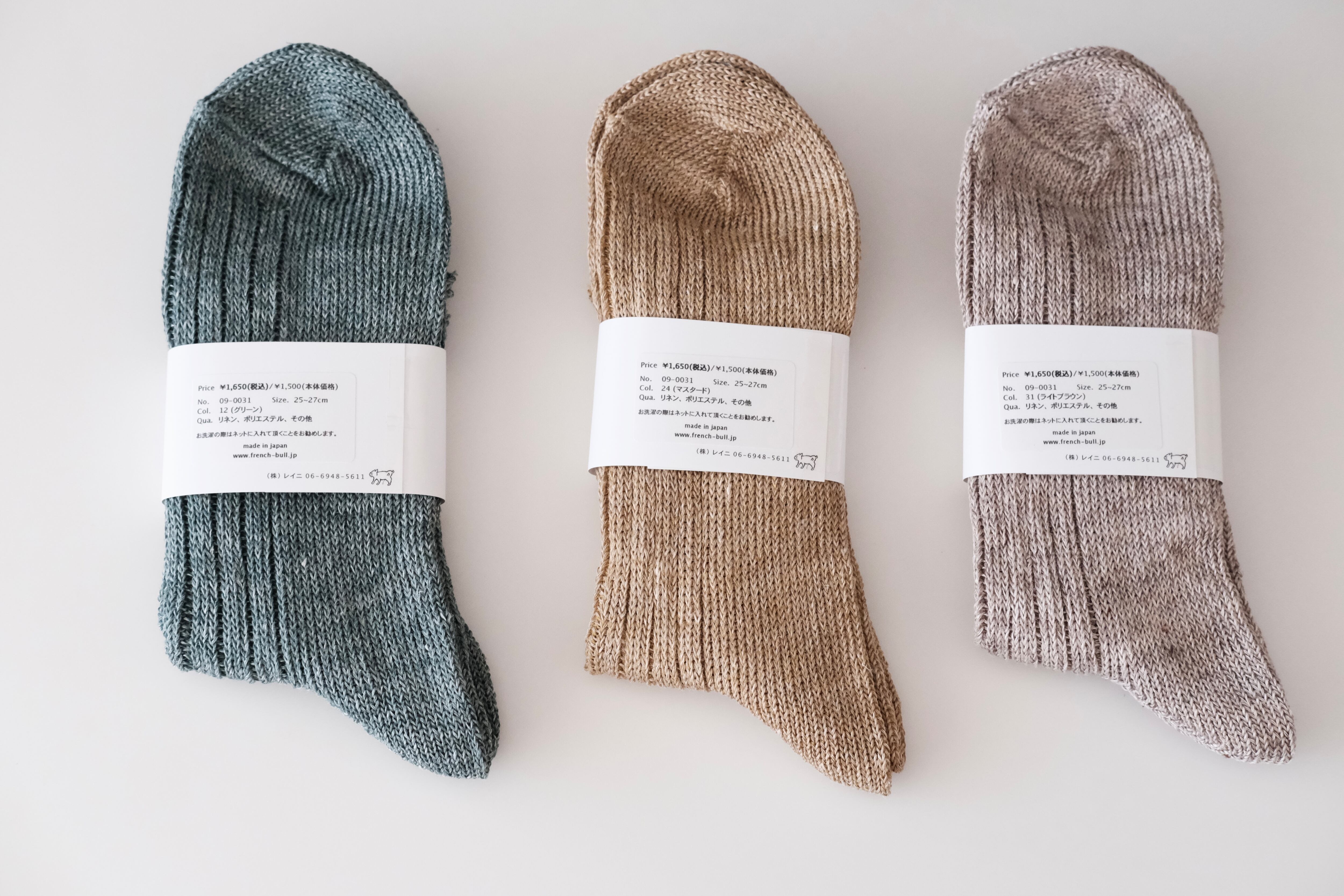 リネン糸で編み立てられたシンプルなショート丈のソックス。