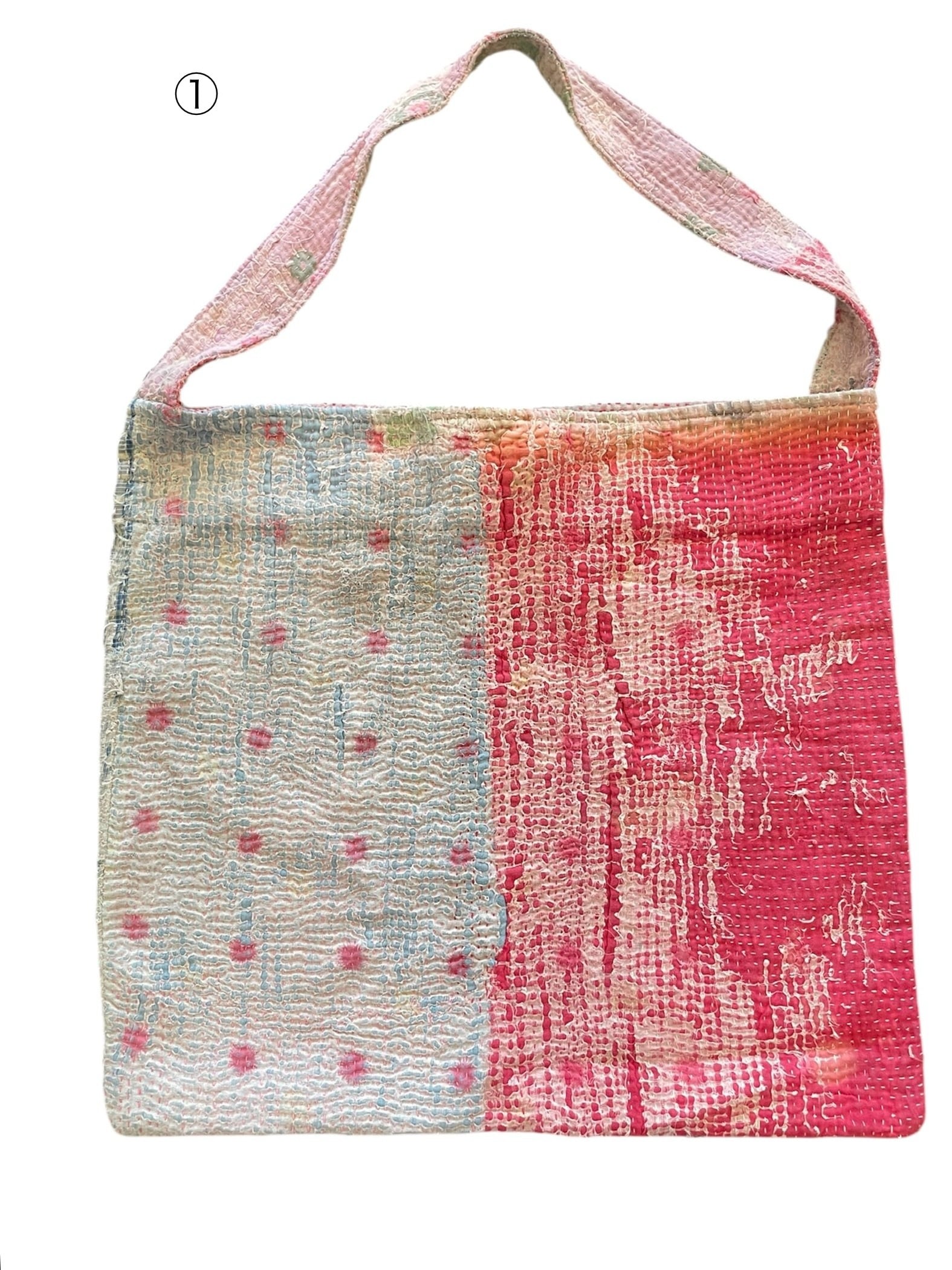 ヴィンテージの布をベースに色鮮やかな生地を幾度にも重ね縫い合わせて、